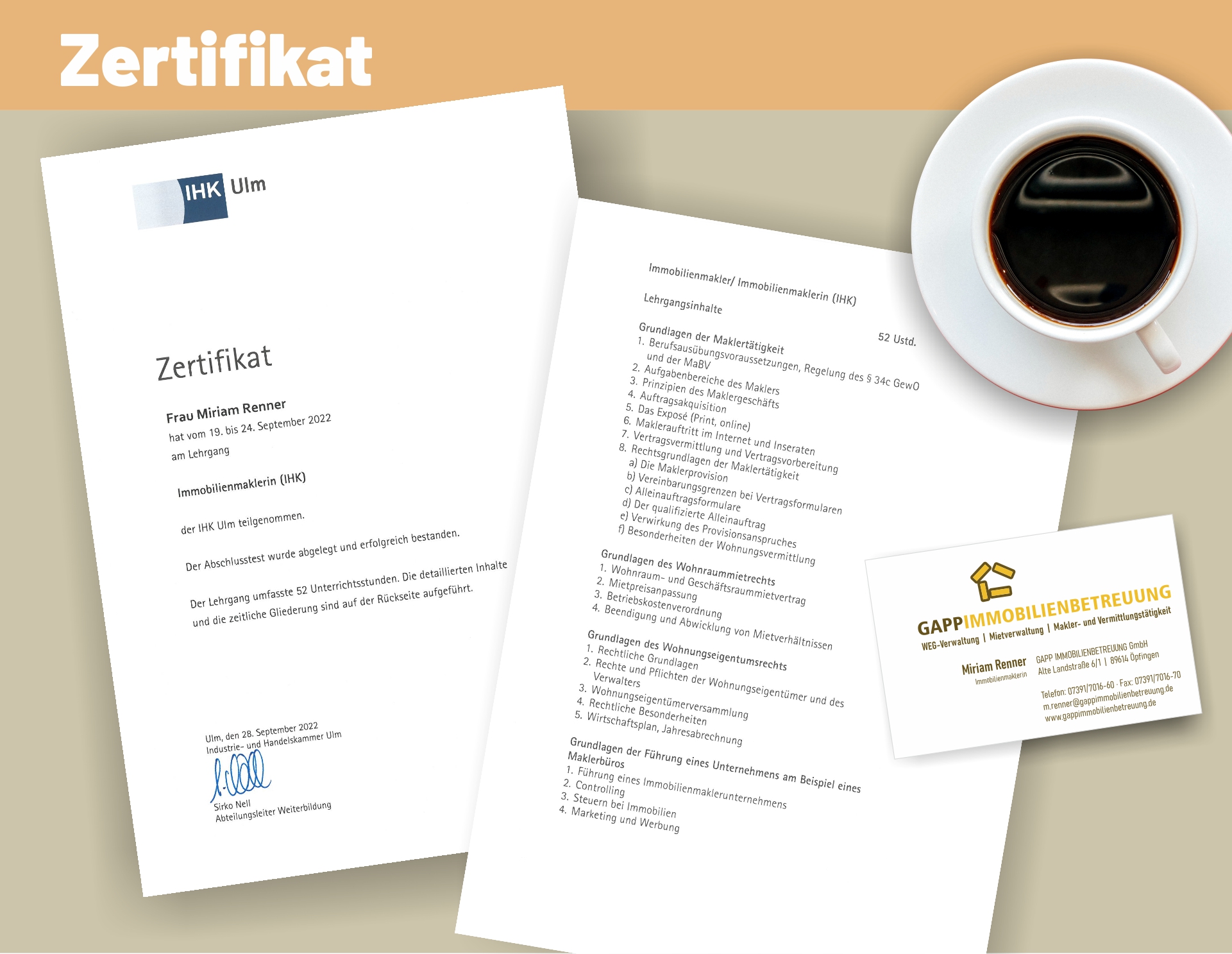 als Kauffrau in der Grundstücks- und Wohnungswirtschaft und über langjährige Berufserfahrung.
